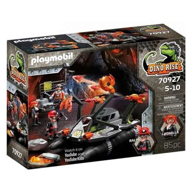 Descubre la emocionante aventura en el mundo de Playmobil con el taladro de demolición de Comet Corp. Este potente vehículo perforador es ideal para que los pequeños exploradores se sumerjan en la acción. Los villanos Ludmilla y Ralph se abren camino a través de Dino Mine, buscando piedras de energía y la enigmática celda de lava.