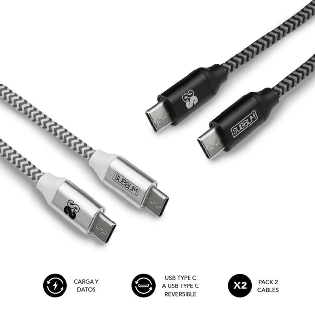 Cable de datos subblim usb tipo c pack 2 negro y plata